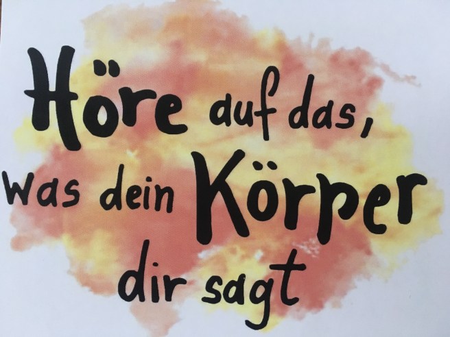Kleine Spoiler Warnung: in dem entworfenen Kalender von Michaela, Julia und mir befindet sich auf meiner Seite folgender präventiver Spruch: Höre auf das, was dein Körper dir sagt!